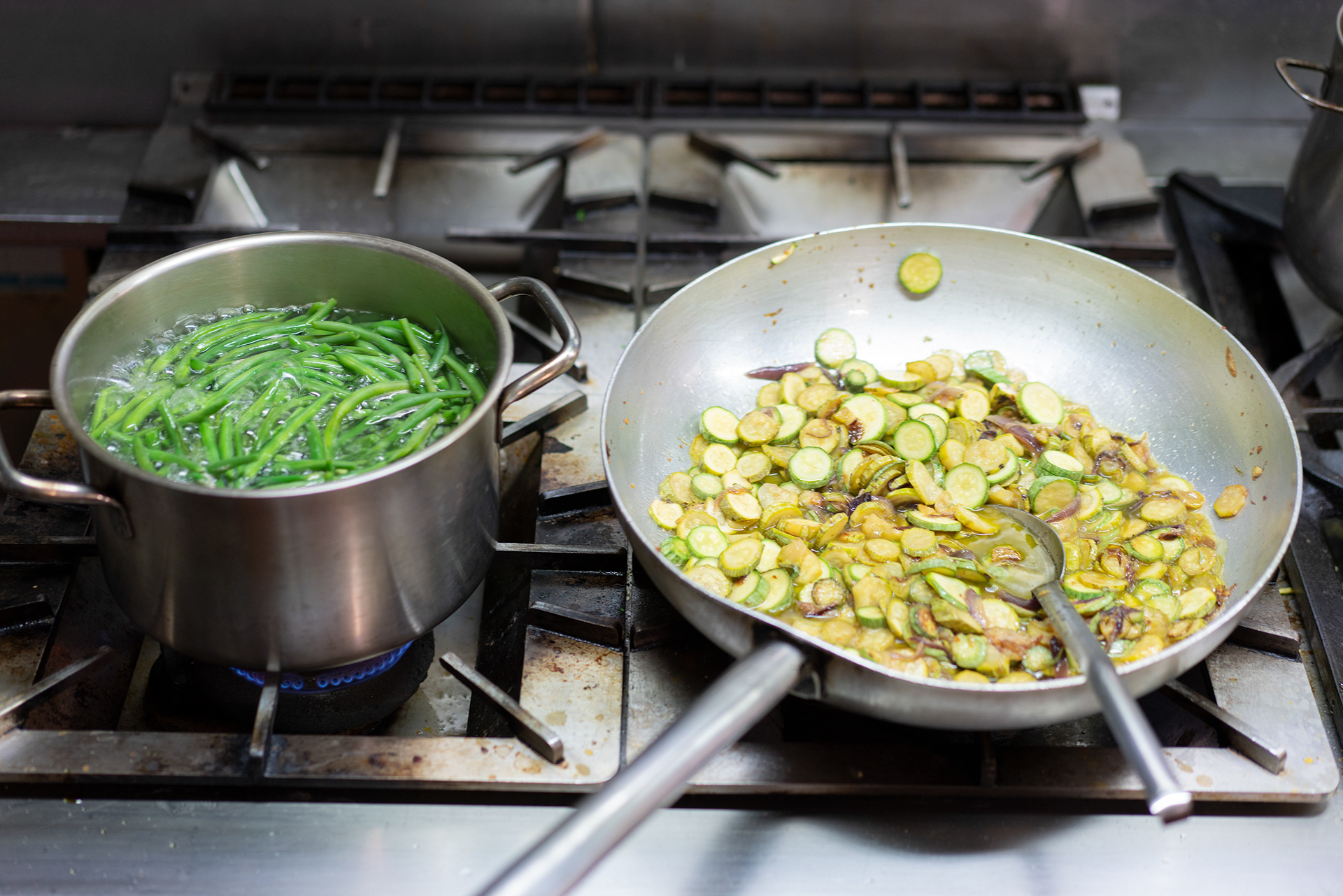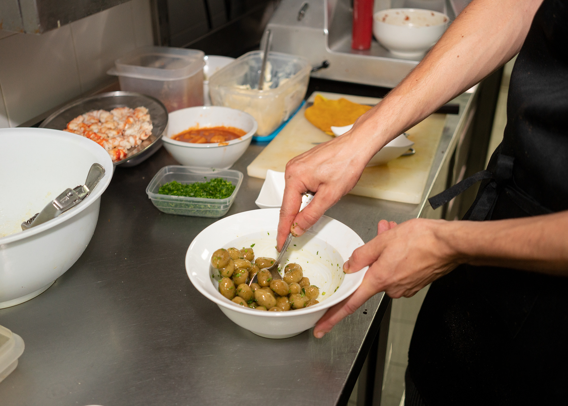 Le olive sono state fatte con purea di zucchine trifolate messe a freddare in stampi di olive
