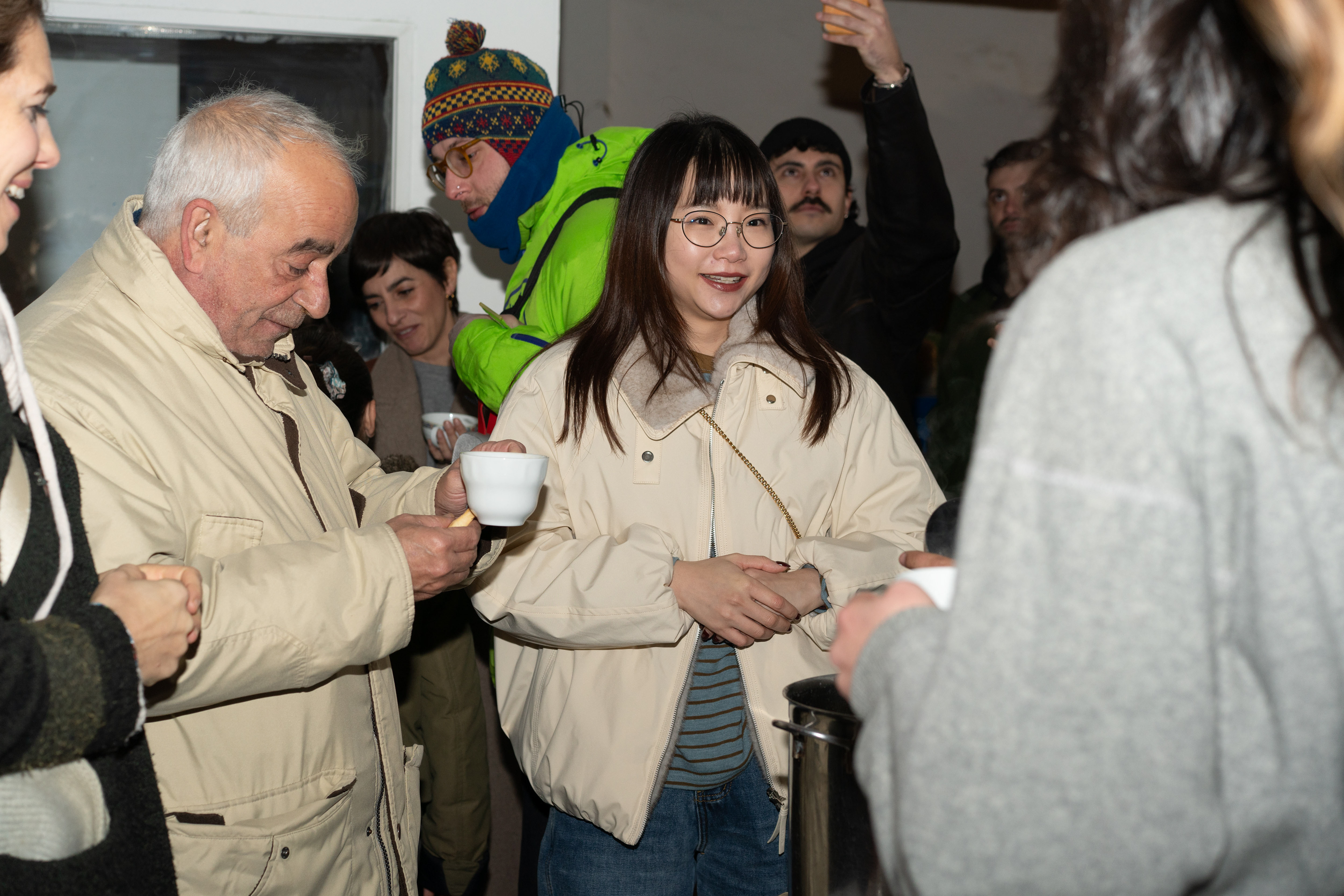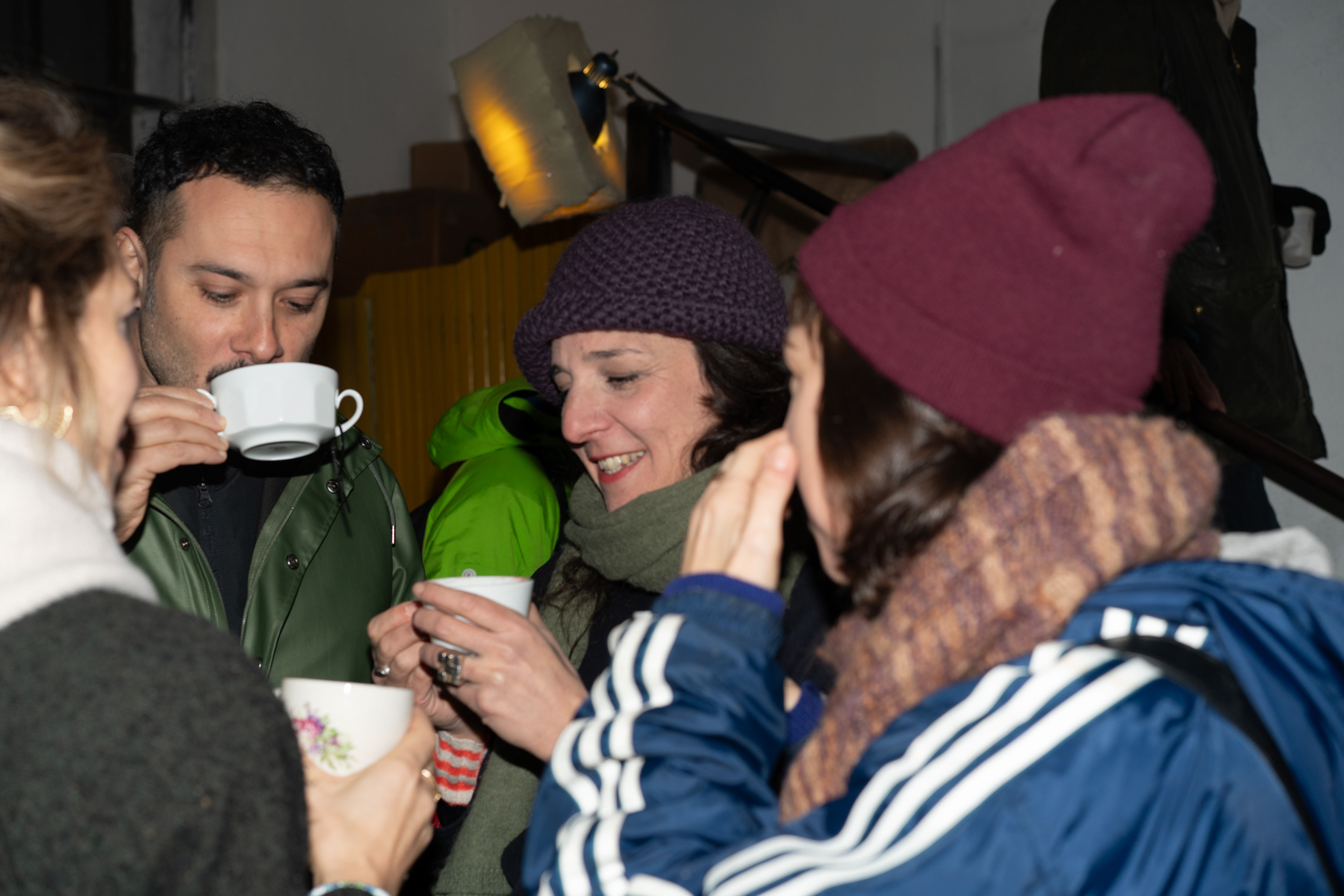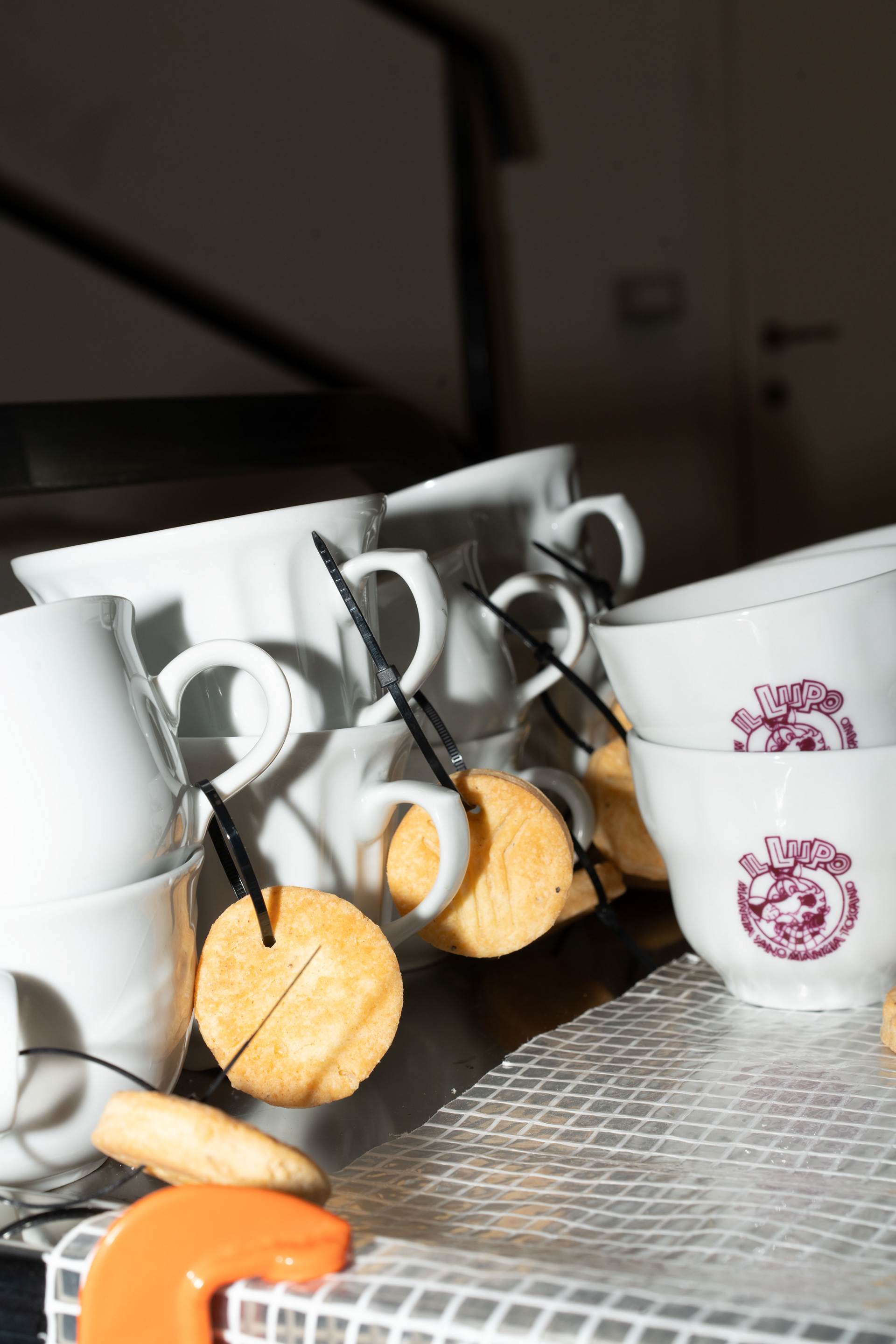 Durante una fredda giornata di open studio di Spazio Yogurmak a Firenze abbiamo offerto una tazza di bordino caldo e frollini al parmigiano serviti come se fossero thè con i biscotti e, per la versione veg, una bustina di infuso di verdure.